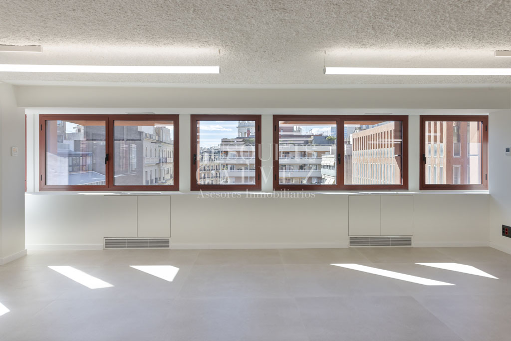 El espacio ocupa media planta y se entrega reformada en su totalidad con acabados de alta calidad. Exterior a dos vientos, recibe mucha luz natural.